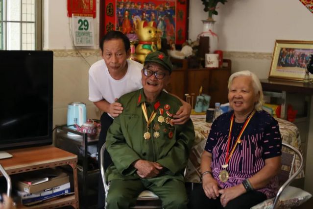 中山市抗日老戰(zhàn)士鄭棣揚,一身老式軍裝,胸前掛著一枚枚斑駁的勛章,年過九旬的他激動地向白石環(huán)小學的學生們介紹這枚抗戰(zhàn)勝利70周年的紀念章,講述抗戰(zhàn)時期驚心動魄的故事,學生們認真聆聽,謹記在心,將他們對鄭爺爺?shù)木囱鲋槟⒂谑种械漠嫻P,用水墨的形式畫出他們心中的英雄。