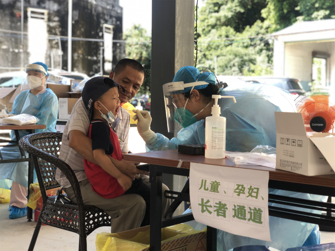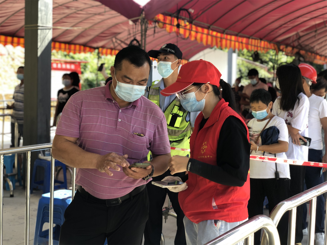 在今天天氣高溫的情況下,全體工作人員身穿防疫服和志愿者服,每個人都是汗流夾背的,可是他們不怕苦,不怕累,不怕流汗,不怕自己被感染的風險,感謝他們的真誠付出和無私奉獻!