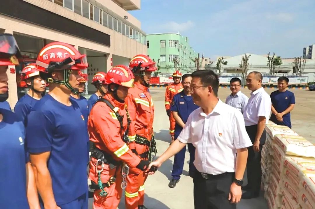 在小欖消防救援大隊,薛治國與消防指戰(zhàn)員們一一握手,向他們送上節(jié)日的問候和慰問品,并對他們的忠誠奉獻表示崇高的敬意和衷心的感謝。