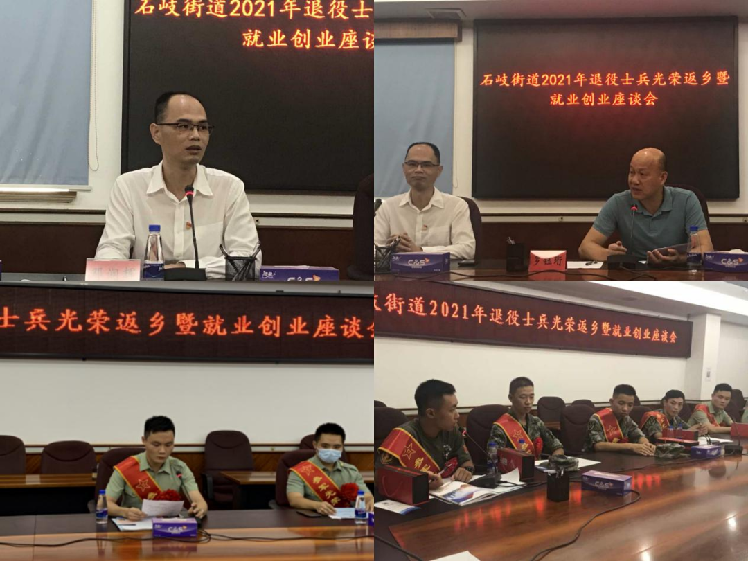9月24日下午,石岐街道辦事處舉辦“2021年退役士兵光榮返鄉(xiāng)暨就業(yè)創(chuàng)業(yè)座談會(huì)”,歡迎今年光榮返鄉(xiāng)的士兵。街道辦事處副主任溫曉虹,公共服務(wù)辦、武裝部、退役軍人服務(wù)中心負(fù)責(zé)人以及今年秋季退役士兵一同參加了座談會(huì)。