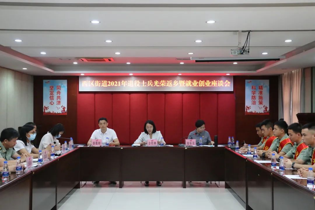 9月28日,西區(qū)街道召開2021年退役士兵光榮返鄉(xiāng)暨就業(yè)創(chuàng)業(yè)座談會。街道辦事處副主任佘任拂,街道公共服務辦、武裝部、人社分局、城住農(nóng)局、退役軍人服務中心相關負責人及2021年退役士兵參加會議。 會上,佘任拂代表西區(qū)街道辦事處向光榮退役返鄉(xiāng)的士兵們表示熱烈的歡迎和崇高的敬意。她表示,西區(qū)街道將繼續(xù)帶著責任和使命,為退役軍人提供全方位的貼心服務,希望退役士兵們珍惜軍人榮譽,永葆軍人本色,積極主動參加各類適應性、技能性培訓學習活動,不斷提高就業(yè)創(chuàng)業(yè)競爭力,邁好事業(yè)轉型、人生轉身的關鍵步伐,并充分發(fā)揚軍人優(yōu)良傳統(tǒng),關心支持、積極參與街道各項建設,為服務街道經(jīng)濟社會發(fā)展建功立業(yè)、增光添彩。 佘任拂為9名優(yōu)秀士兵佩戴綬帶,頒發(fā)獎勵金 公共服務辦為15名退役軍人佩戴綬帶并頒發(fā)“光榮退役”紀念品 座談會上,西區(qū)街道人社分局、退役軍人服務中心相關負責人分別就退役安置、撫恤優(yōu)待、教育培訓、創(chuàng)業(yè)扶持等相關政策進行講解,并現(xiàn)場解答了部分退役士兵提出的問題。城住農(nóng)局相關負責人也向退役士兵推薦并介紹了相關職位,鼓勵他們積極報名參與。 退役士兵代表梁智靈在會上發(fā)言,暢談8年的部隊生活,分享部隊收獲,也表達了自己對未來事業(yè)發(fā)展的方向和想法。 光榮返鄉(xiāng)暨就業(yè)創(chuàng)業(yè)座談會,向退役士兵們傳達了街道黨工委、辦事處的殷切關懷,讓他們體會到家鄉(xiāng)的溫暖,感受到家鄉(xiāng)的變化,期盼退役士兵今后能積極融入社會,以軍人的優(yōu)良傳統(tǒng)以及作風迎接新生活的挑戰(zhàn),創(chuàng)造性地為推動發(fā)展、維護社會穩(wěn)定作出貢獻。 |