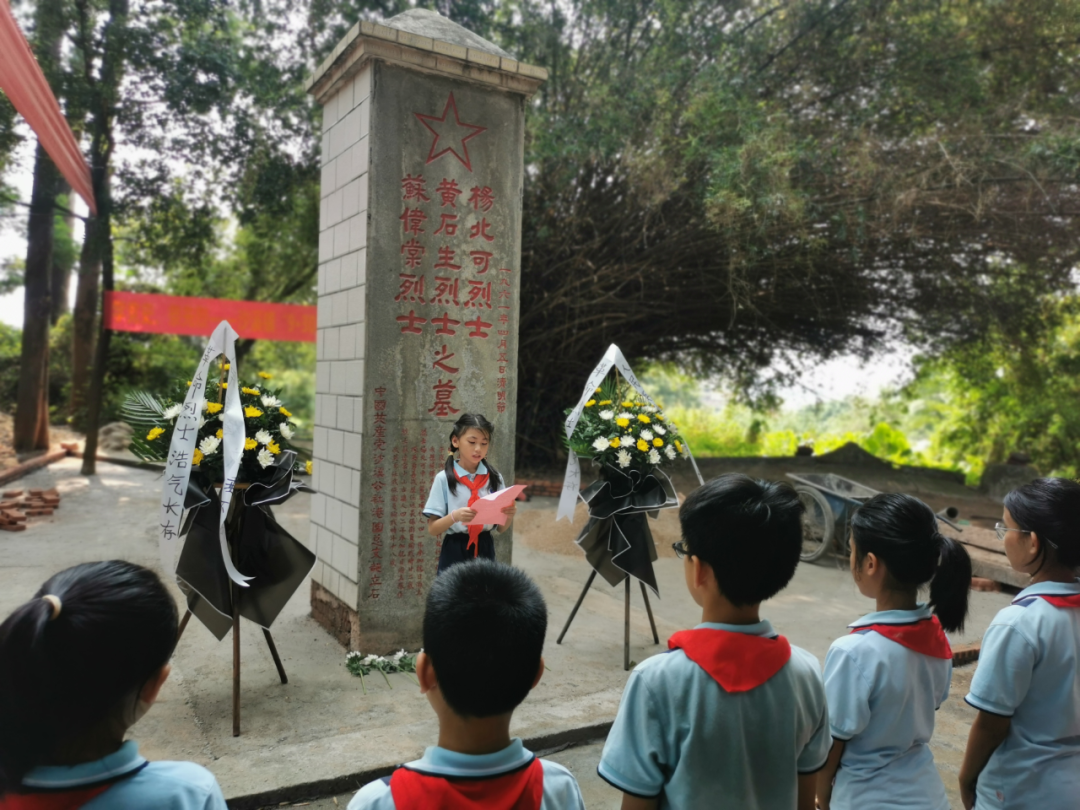 少先隊員代表、中心小學(xué)學(xué)生黃可馨為烈士們獻(xiàn)詞:作為未來祖國接班人,身上流淌著的是先輩們的紅色基因,傳承的是紅色的革命的理想,應(yīng)該養(yǎng)成文明進(jìn)取的習(xí)慣,學(xué)習(xí)好各門文化知識,掌握好各種科學(xué)技術(shù),完善自己的思想,凈化自己的心靈。維護(hù)民族尊嚴(yán)和國家榮譽(yù),將國家的明天建設(shè)得更加美好!