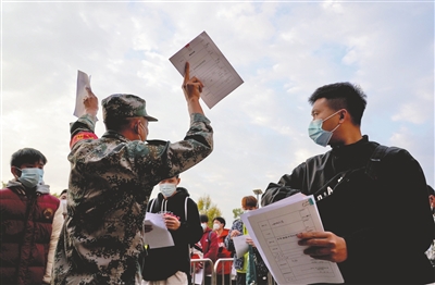 應(yīng)征青年核酸檢測合格后,在帶檢員的引導(dǎo)下進(jìn)入體檢環(huán)節(jié),全程實行全封閉式管理。