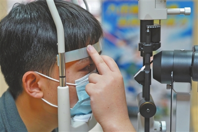 一名青年接受細(xì)致的眼科檢查。