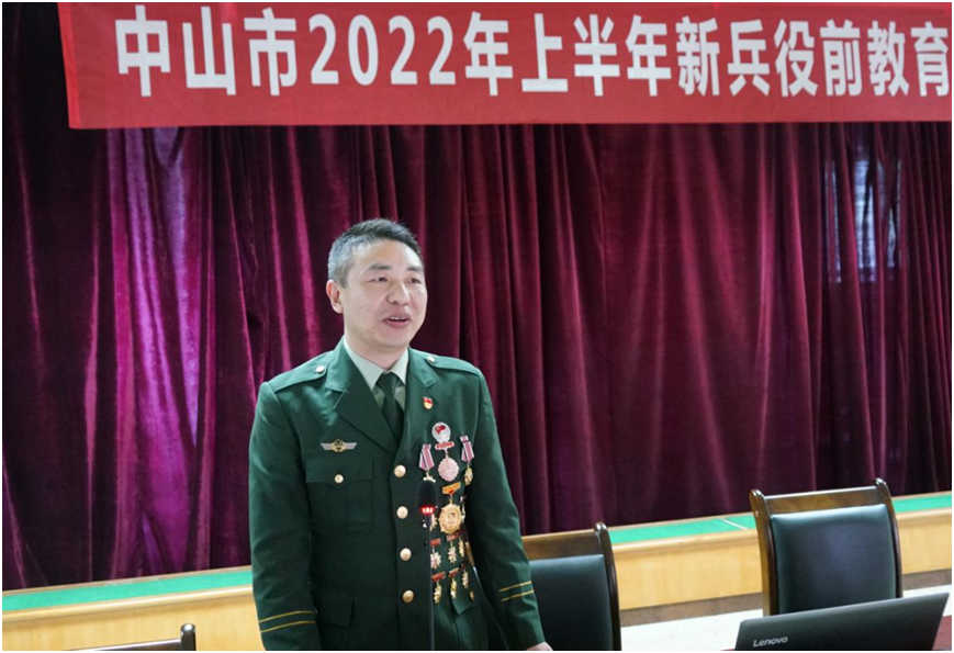 參戰(zhàn)老兵鄭志淦為準(zhǔn)新兵分享軍旅故事。 “當(dāng)兵會(huì)流汗,會(huì)流血,會(huì)流淚,但也會(huì)讓你成長,成為一名真正的軍人。它是你成鋼的熔爐,是你起飛的翅膀,會(huì)讓你擁有更廣闊的藍(lán)天。”在中山邊防支隊(duì)服役16年,榮獲2次個(gè)人三等功、8次優(yōu)秀士兵、12次各級(jí)嘉獎(jiǎng)的退役老兵梁華分享了自己多年來的從軍經(jīng)驗(yàn),他希望準(zhǔn)新兵們提高思想政治覺悟,步入軍營后勇敢磨煉自己,早日成為一名合格的軍人。