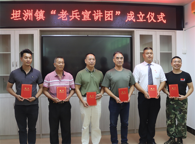 7月26日,中山市坦洲鎮(zhèn)成立全市鎮(zhèn)街首個“老兵宣講團”。中山市退役軍人事務(wù)局、中山市退役軍人服務(wù)中心,坦洲鎮(zhèn)公共服務(wù)辦公室、退役軍人服務(wù)中心等單位相關(guān)負(fù)責(zé)人,坦洲鎮(zhèn)“老兵宣講團”成員等出席成立儀式。 成立儀式現(xiàn)場,坦洲鎮(zhèn)退役軍人服務(wù)中心負(fù)責(zé)人簡要介紹了“老兵宣講團”成立的目的、任務(wù)及宣講團成員的基本情況。相關(guān)領(lǐng)導(dǎo)為“老兵宣講團”授旗,并頒發(fā)聘用證書。  ▲坦洲鎮(zhèn)老兵宣講團成員獲頒聘書。