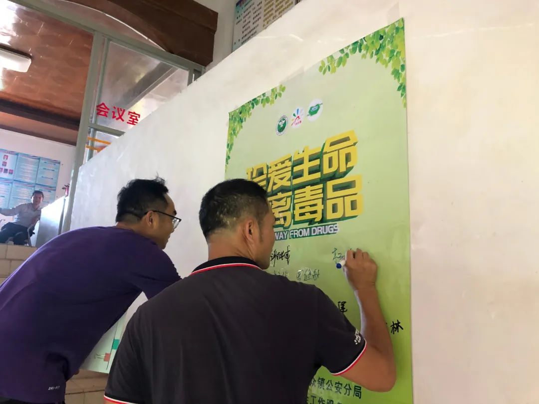 活動(dòng)最后,在向日葵禁毒社工的帶領(lǐng)下,退伍軍人舉手表態(tài),自覺(jué)抵制毒品誘惑,主動(dòng)參與禁毒斗爭(zhēng),并且在禁毒宣傳背景墻上簽名以表禁毒決心。