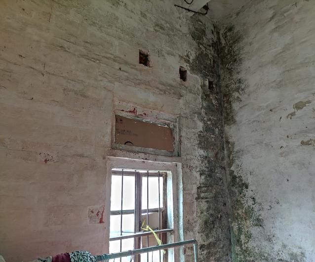 當天下午,兩名向日葵社工來到了阿耿家中,阿耿看到社工的到來,仿佛看到了希望的曙光。阿耿家非常的破舊,是一幢年久失修的紅磚房,門窗都是木頭制成的,已經破爛不堪。進到房子里面,看到阿耿現在是把廚房用具搬到了客廳,本來就小的客廳顯得更加的擁擠。幾句寒暄過后,阿耿帶社工去到出現漏水情況的房間,一進到房間,社工就發(fā)現房間墻身已經出現了非常嚴重的發(fā)霉情況,甚至有部分墻壁還長出了青苔,阿耿說:“這已經出現很長一段時間了,前段時間下雨,墻壁一直滲水,這個房間原本是我住的房間,因為滲水情況越來越嚴重,就搬到旁邊原來作為廚房的房間居住,而且窗戶的玻璃都已經全部掉落了,現在這個房間已經完全不能住人了。”阿耿說完,就告訴社工還有另一處漏水的地方??吹搅硪惶幝┧牡胤?,社工發(fā)現墻壁因長期滲水導致墻面剝落且墻體分離,到處都是霉斑。阿耿表示,這是漏水情況最嚴重的房間,房子的其他地方也出現了不同程度的漏水,隨后,阿耿把社工帶到客廳,把其他漏水的地方和情況也向社工反饋。社工看到阿耿現在居住在如此破爛的房子,不禁感到一陣酸楚,同時也跟阿耿商討著怎樣去解決漏水的問題。